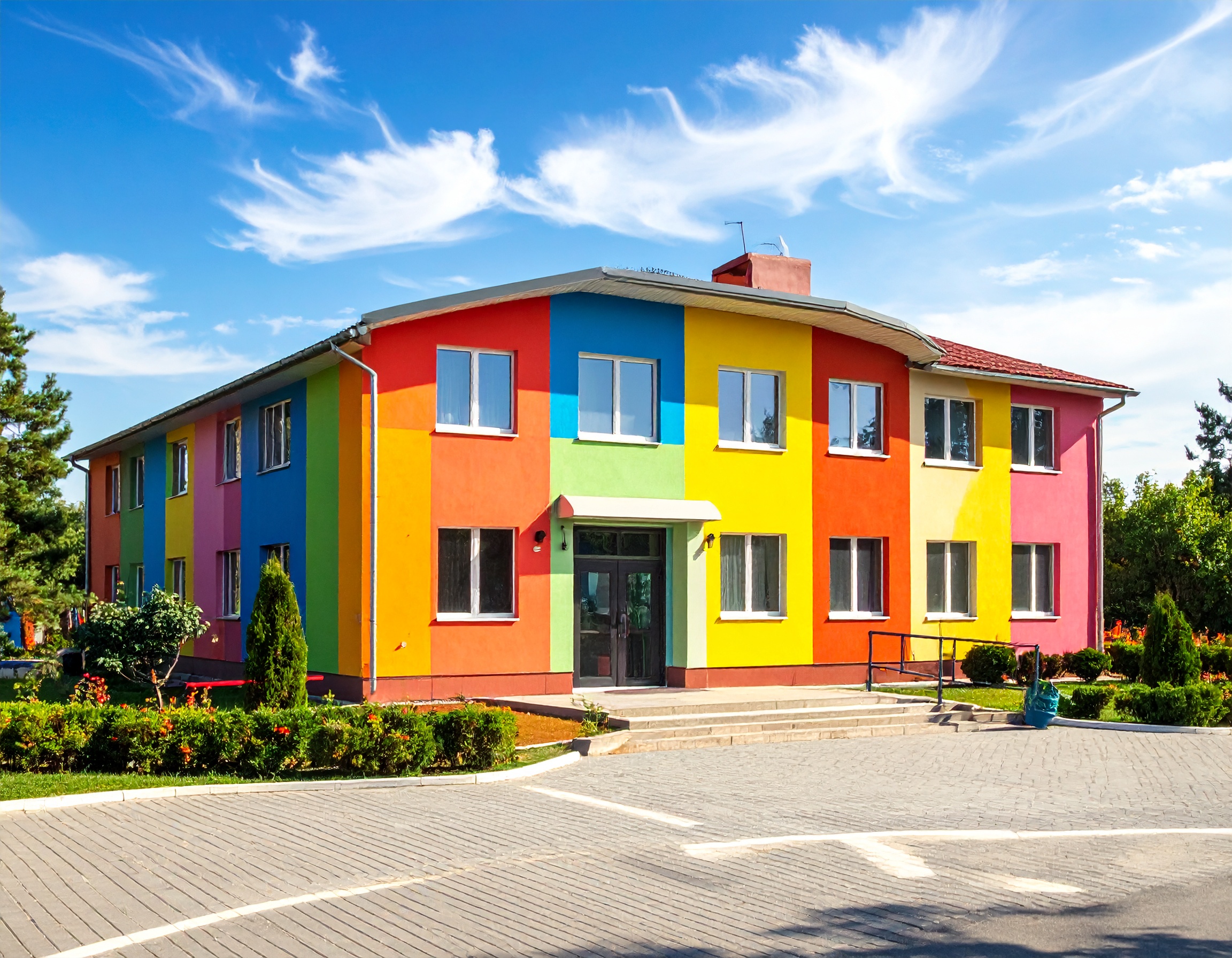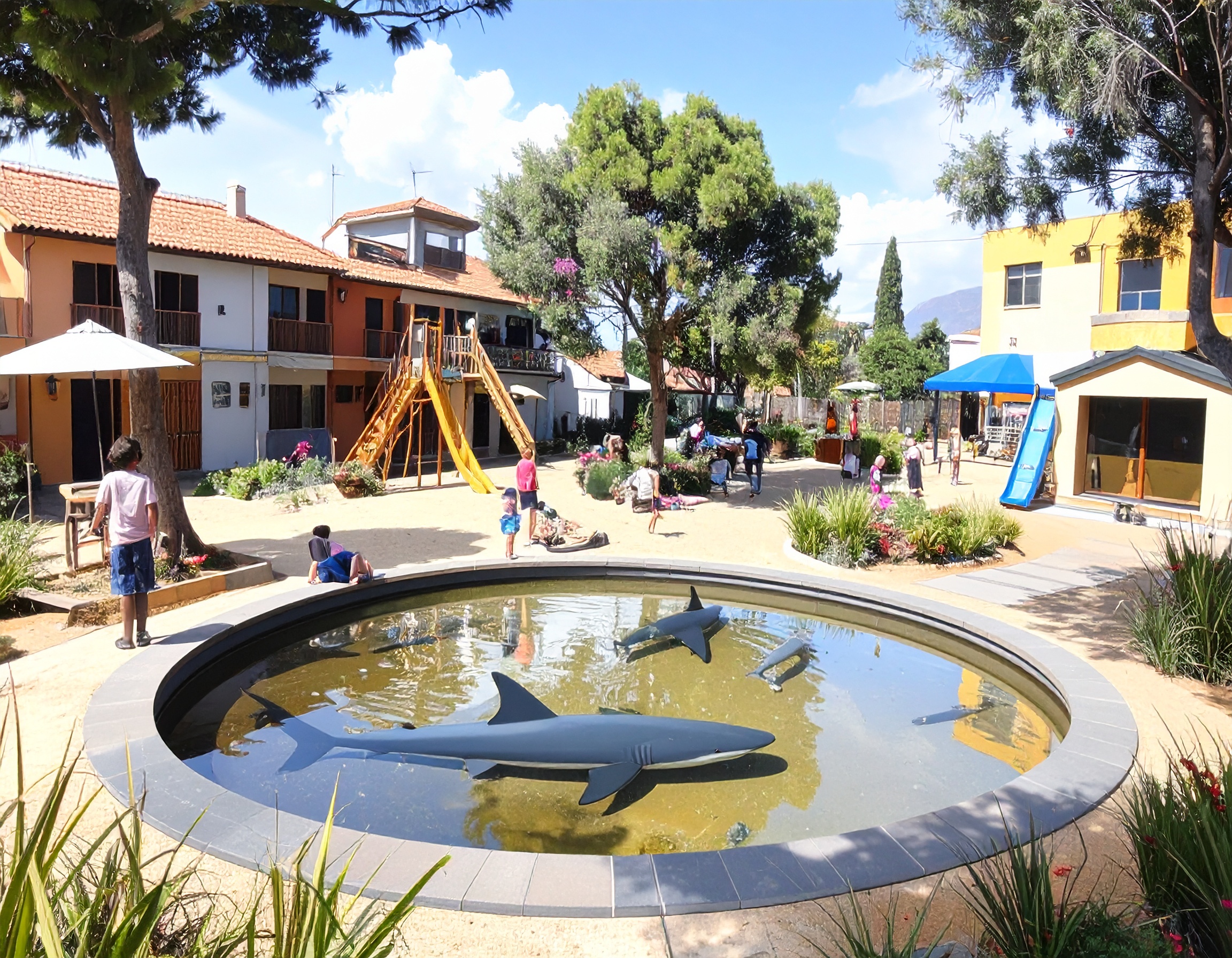 園庭・園舎 園舎 令和6年度にリニューアルしました。窓が多く、開放的な空間で、子供たちはのびのびと過ごします☆ 園庭 温かい木漏れ日が入り、夏は水遊び、冬は日向ぼっこ☆ と、四季折々の『自然の展示物』に触ったり。「これなに??」と探求心が膨らみます☆
